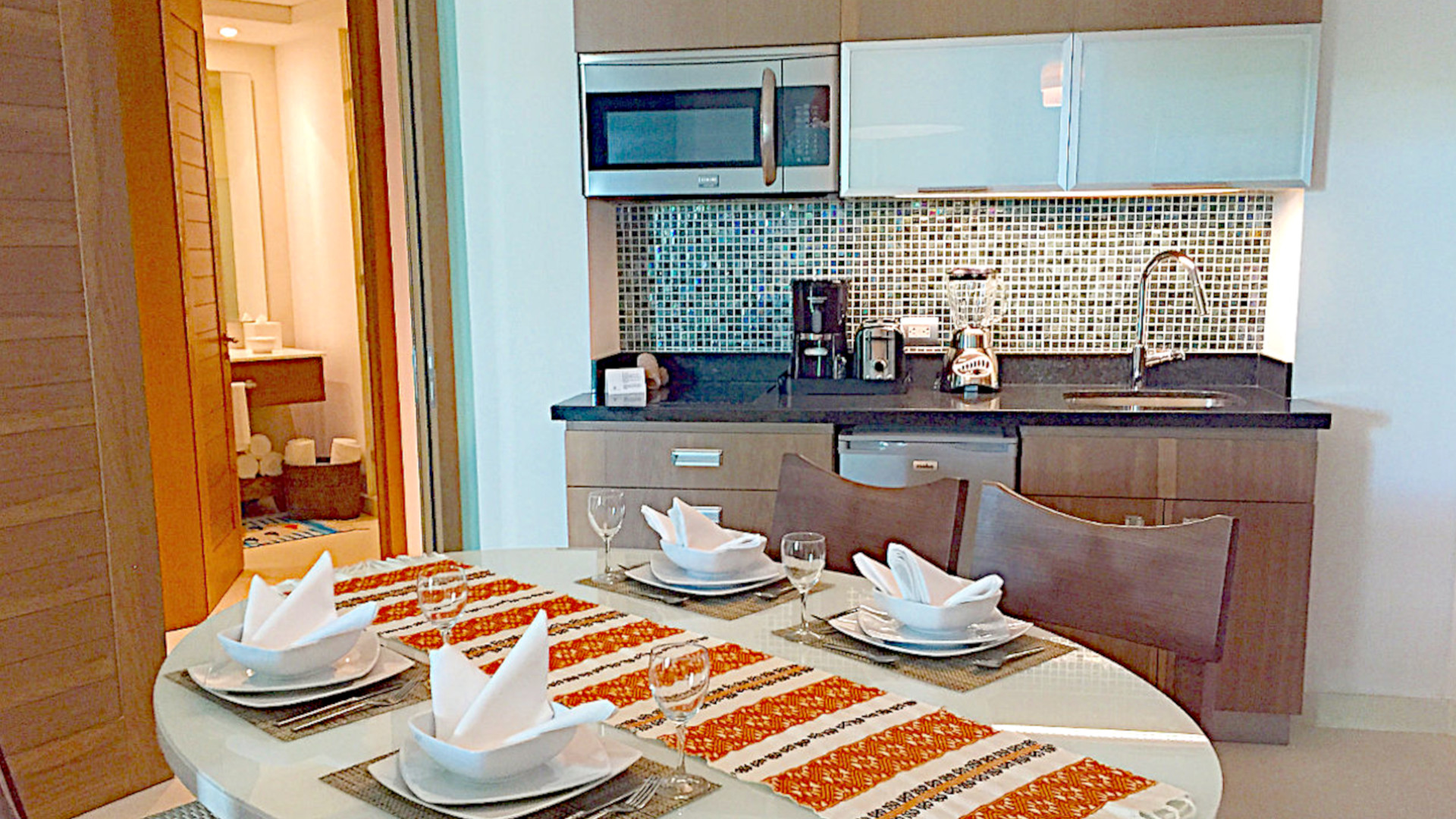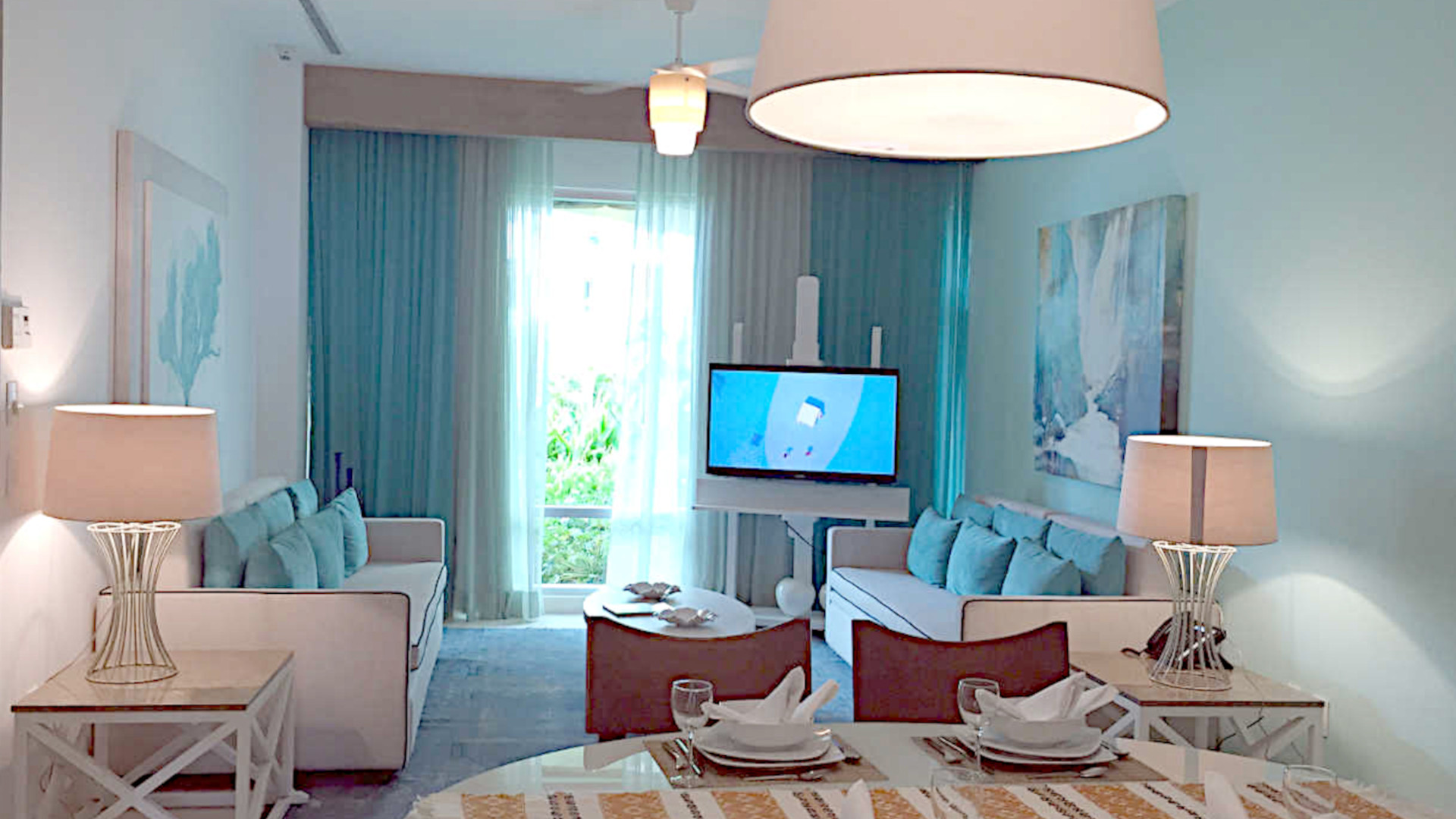 The Cascades two bedroom suites are located in the Cascades Tower in the BON Entertainment park. The building is not open yet. It is located between to the left of the Monument as you look east from the middle of the BON Park. The units seen here are models shown in San Jose del Cabo.