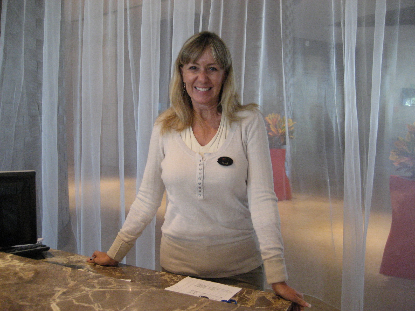 Cindy greets members and arranges for updates at Grand Bliss Dec 8 2010