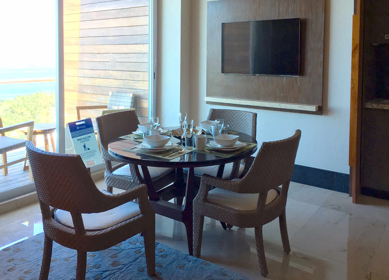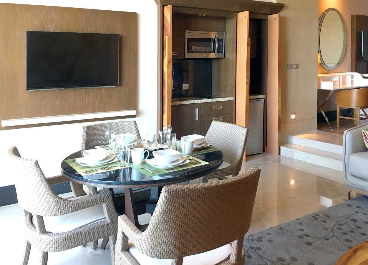 The Luxxe Master Villas are two bedroom units with approximately 2,800 square feet of living and deck space. These spacious, luxurious accommodations are currently located in two towers along the Ameca River in Nuevo Vallarta, which is in the state of Nayarit, Mexico and one, three story, triangular shaped "pod" (our word) at the Grupo Vidanta property at the Riviera Maya region of the state of Quintana Roo.The Luxxe Master Villa floor plan features large living and dining areas, a kitchen area (The kitchen includes nearly everything but a dishwasher and an oven.), two large bedrooms, a half bath and a large deck with a dipping pool. Members LOVE the decks, regardless of whether they are on the ocean side or have easterly views. Additionally, all members like opening the accordion doors. These span the width of the living area, which is about 20 feet and give the space an open, airy feeling. Wow!
