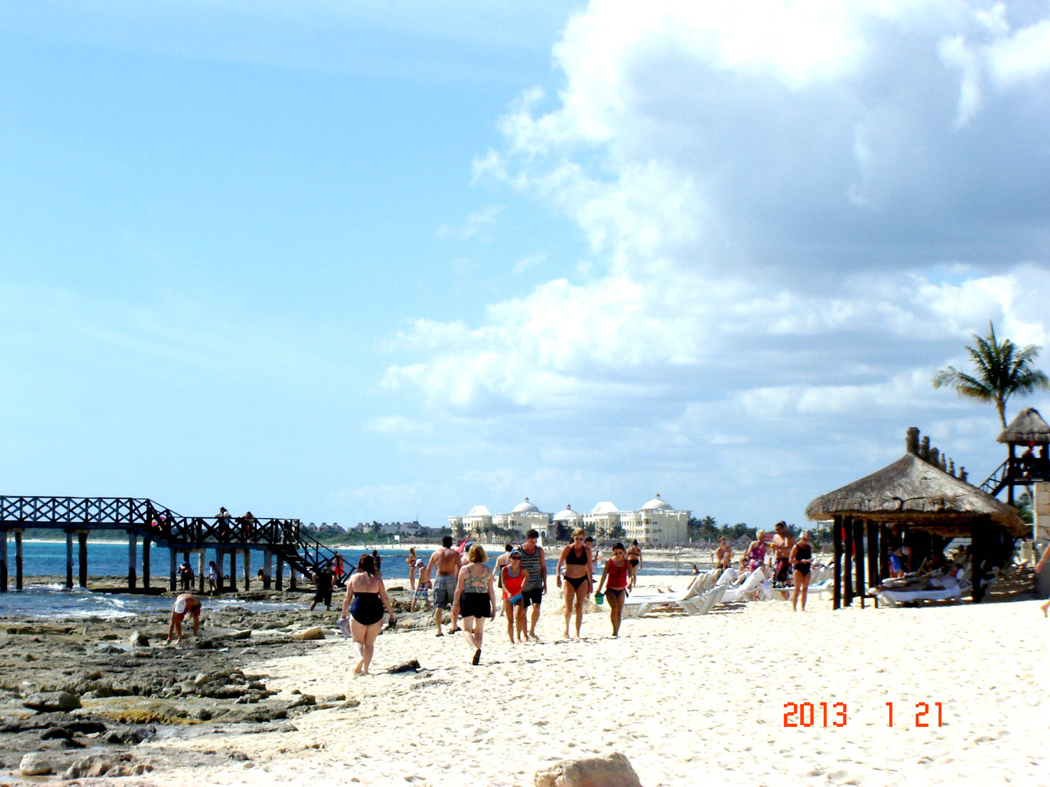 High Season at Mayan Palace Beach Pier with Iberostar Resort in distance