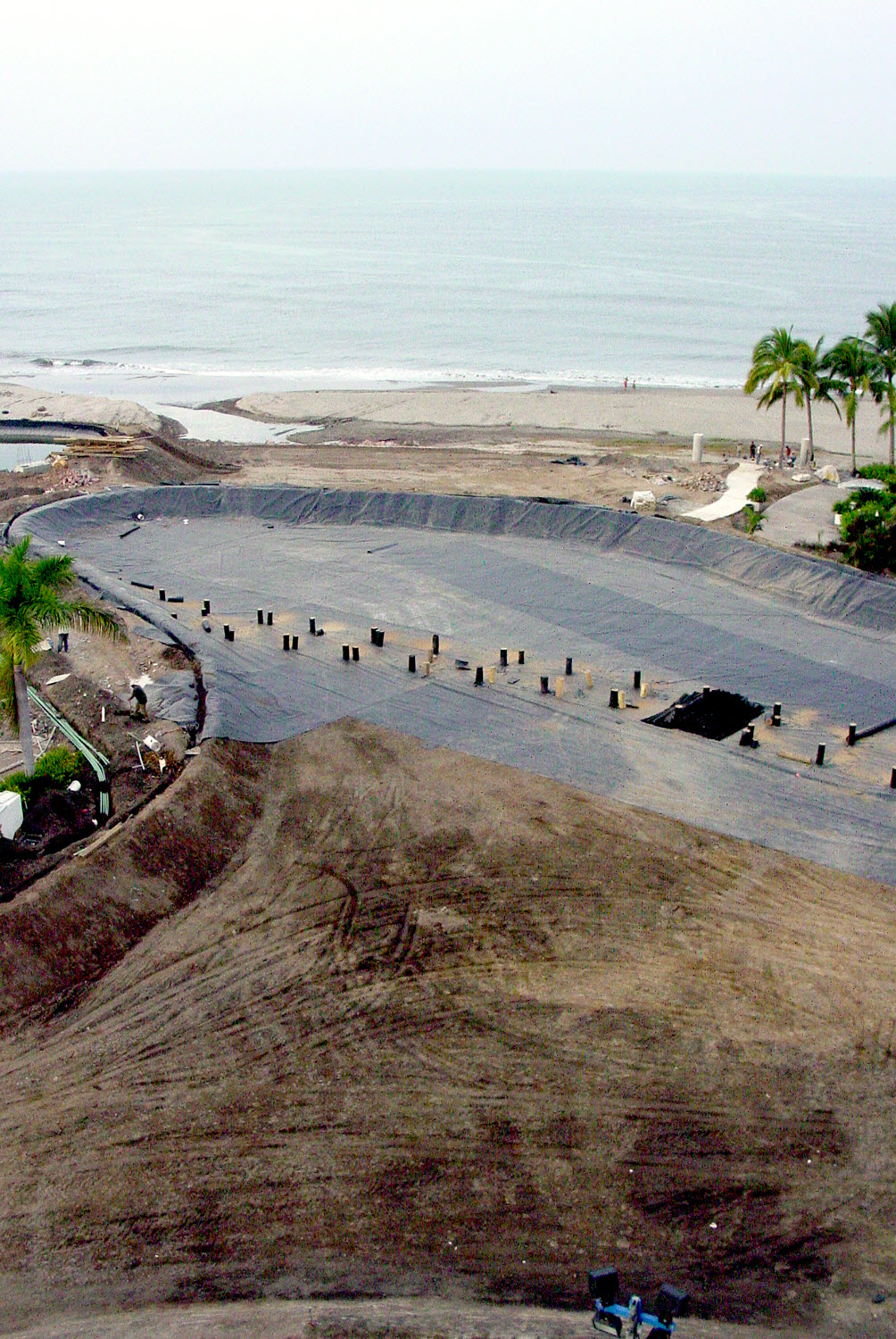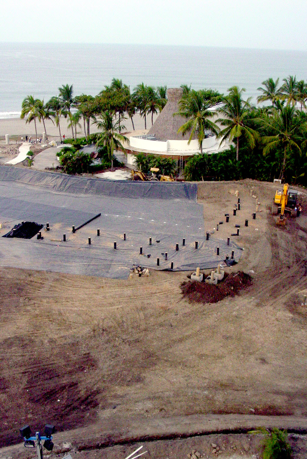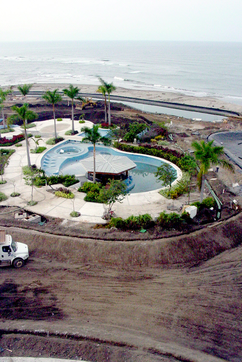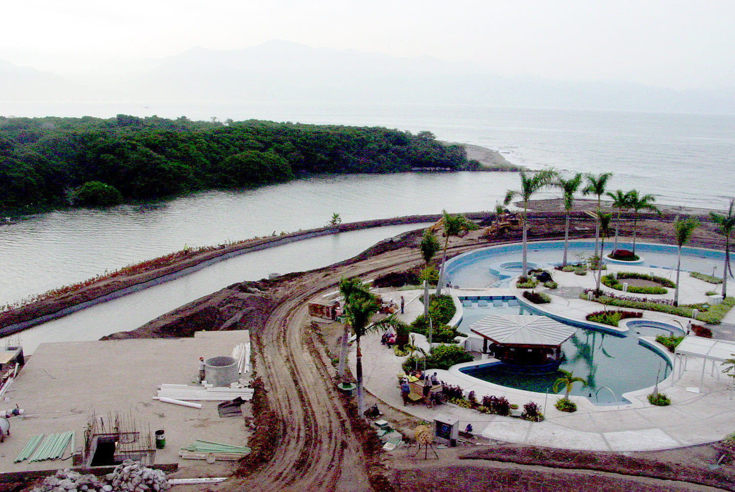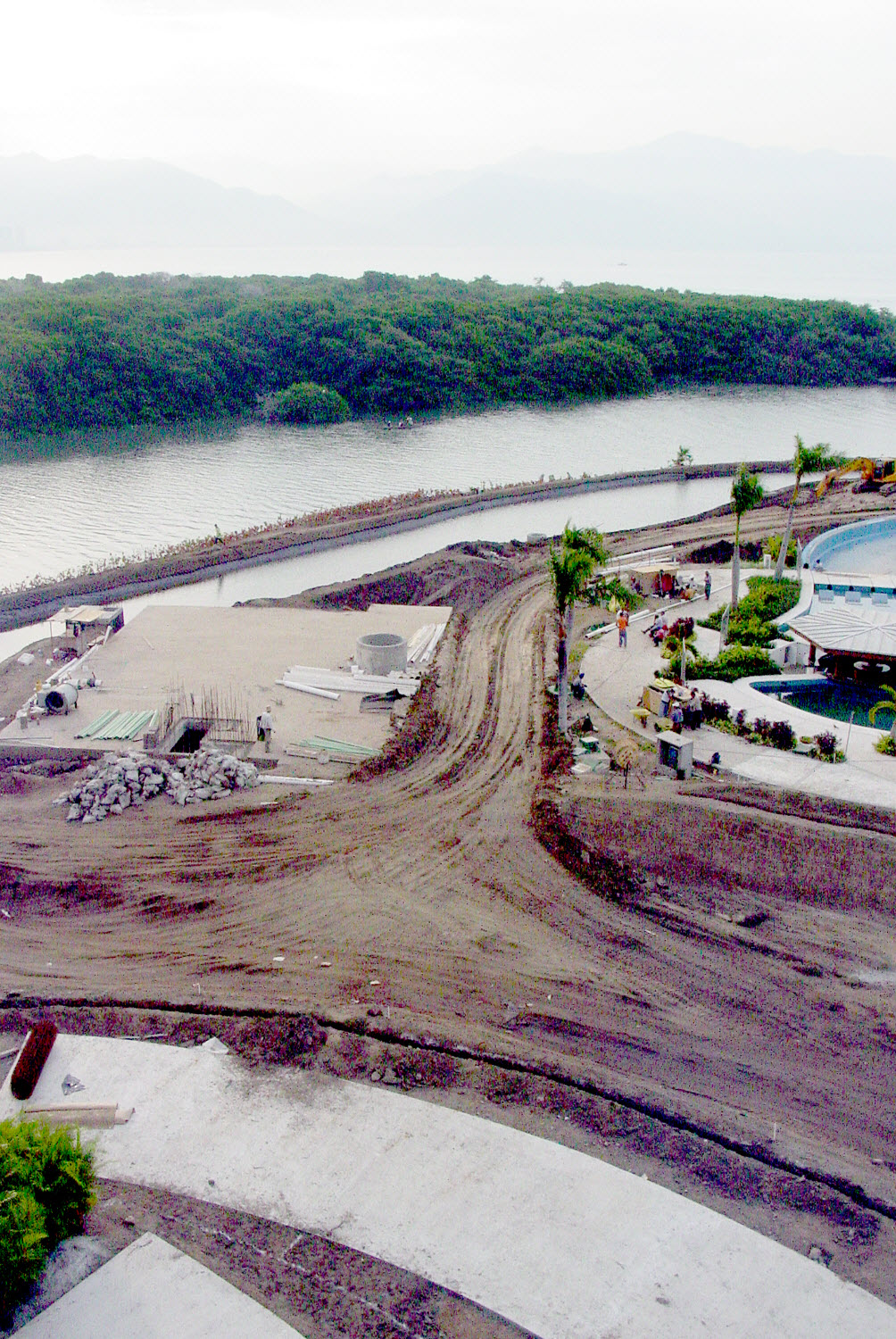 We then took a look at photos we took earlier in the week. Sure enough....the two new hot tubs that are located between the navigable waterway burm and the infinity pool were gone....covered with dirt.