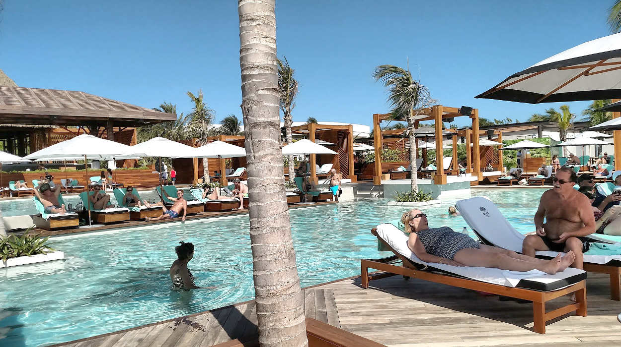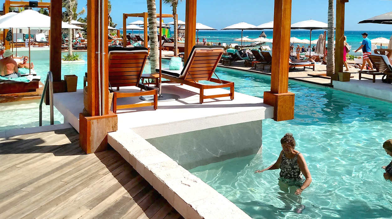 The Beach Club at Vidanta Riviera Maya seems like a "cozy" area. It is on the beach, the pools are relatively compact and the seating seems crowded. In fact, there may be advantages to sitting on the beach and accessing the food that comes from the Beach Club.