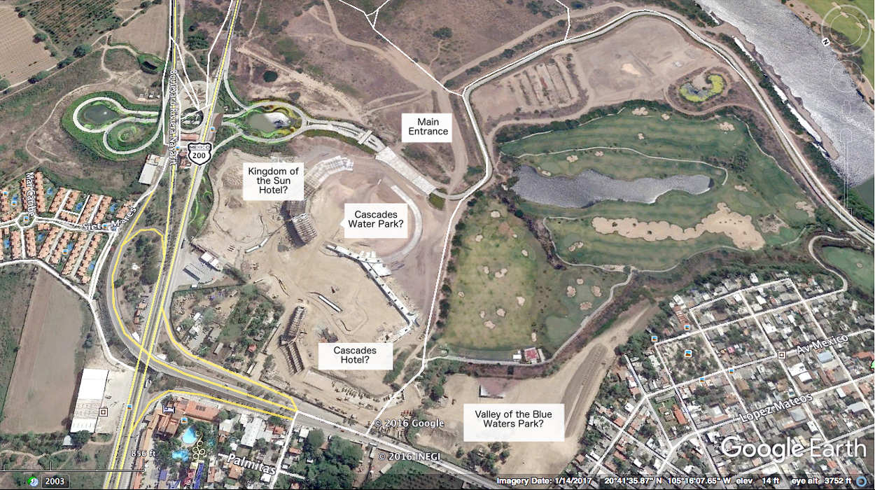 We will continue to show changes to the area as we receive members' photos. No question there is a lot of work being done. Vidanta expects up to 1 million visitors to this first phase of a two phase project. The primary draw will be the water parks. It appears the first one will be Cascades Water Park. If successful, Vidanta may proceed with phase two, which might include the Valley of the Blue Waters water park. This featured item looks fun, but as usual, we will all have to wait. Maybe four years from now, in 2022.