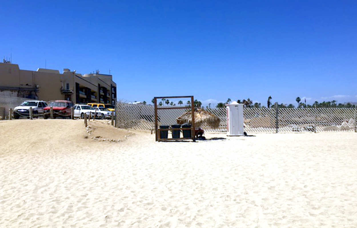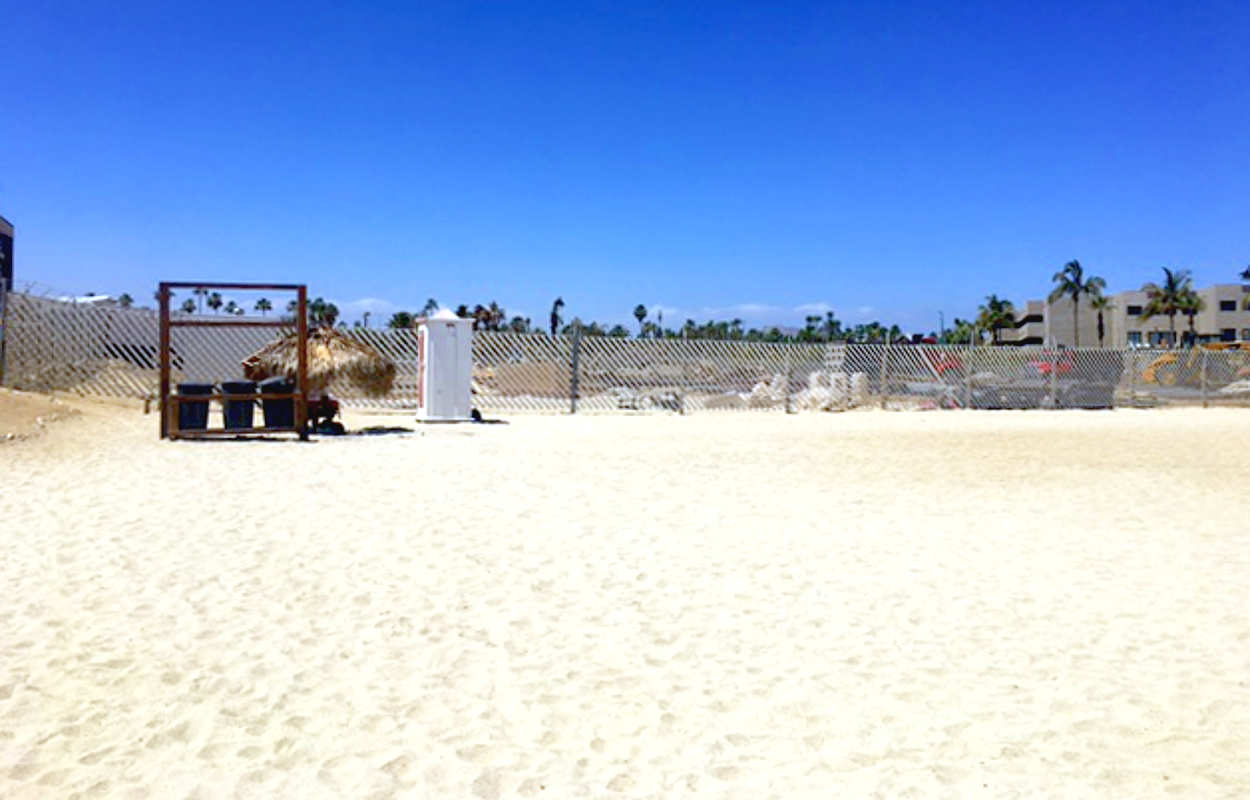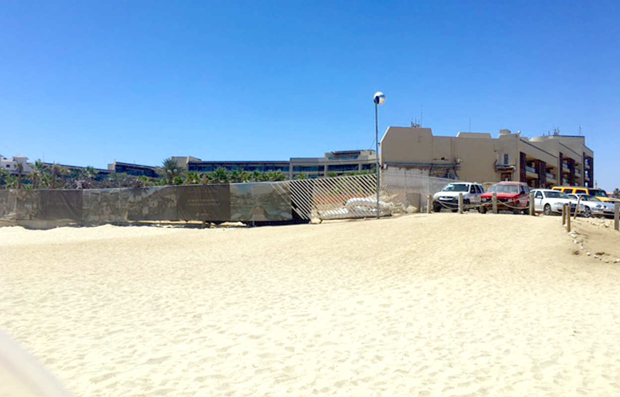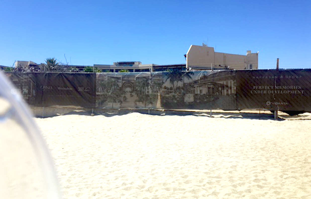 This view shows the construction from behind the fence that separates the pool area from the construction. The photos of the beach and pool were taken from the area in the distance.