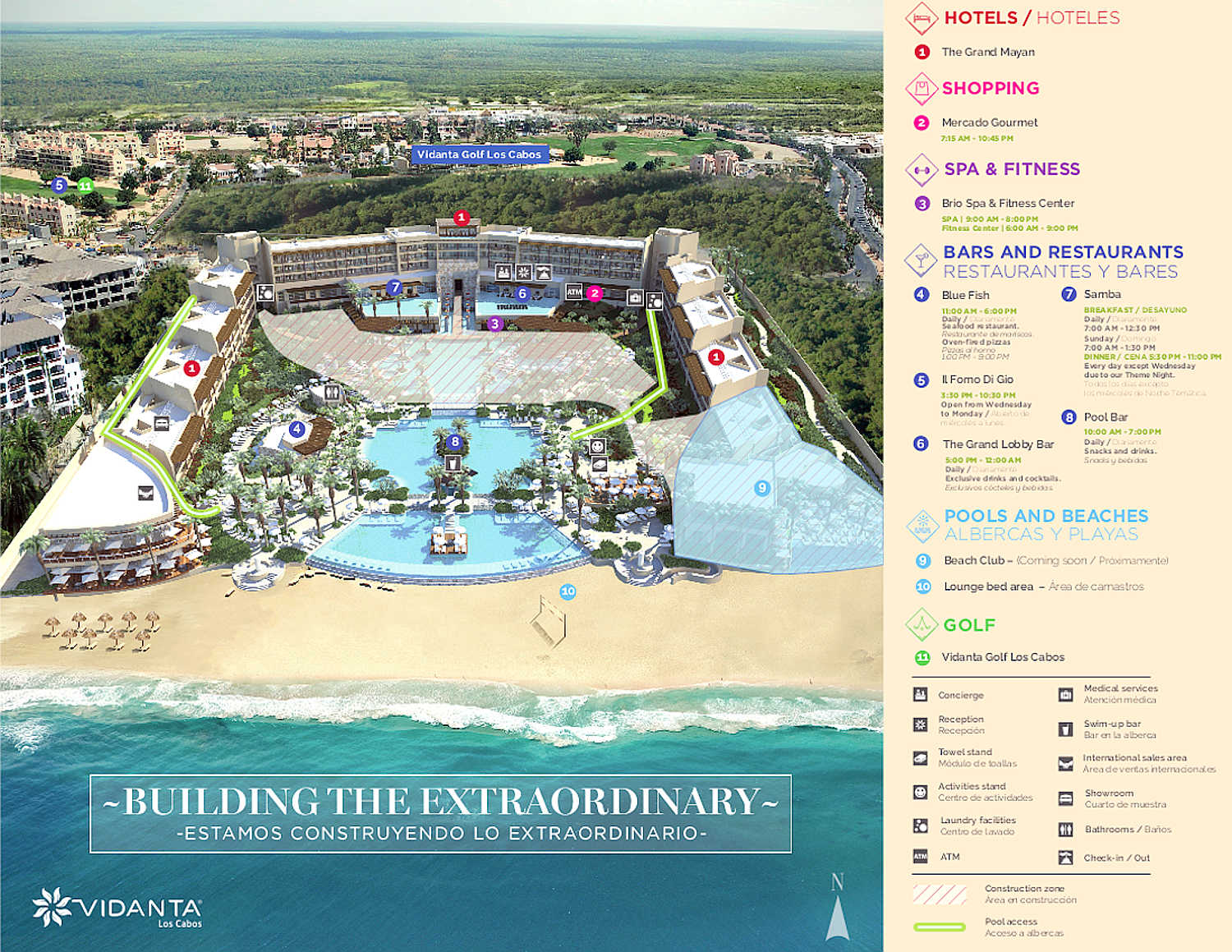 The Grand Mayan at San Jose del Cabo is under construction again. Last time the property was in disarray was because of damage caused by Hurricane Odile on September 14, 2014. Today, consturction of the Hakkasan beach club/facility is well underway causing noise and inconvenience. This photo shows the planned construction. Thank you Lindag2 for the file. Tap the photo to expand and tap your browser's back arrow to return.