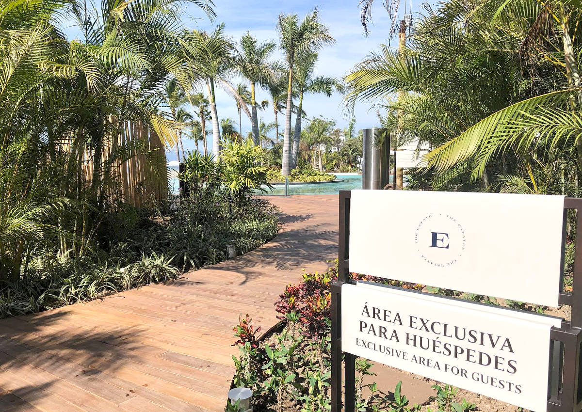 Beach walkway to and from the Punta Pools. It is located located in front of the Puerto Manjar restaurant. Umbrellas are in front of the Exclusivo Lounge area.