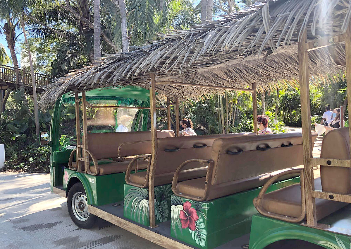 There is a new feature, which we will call a Water Shuttle. It crosses a new and submerged roadway in a new lagoon located between the Mayan Palace pool and the Grand Bliss pool. Yes, this is new.