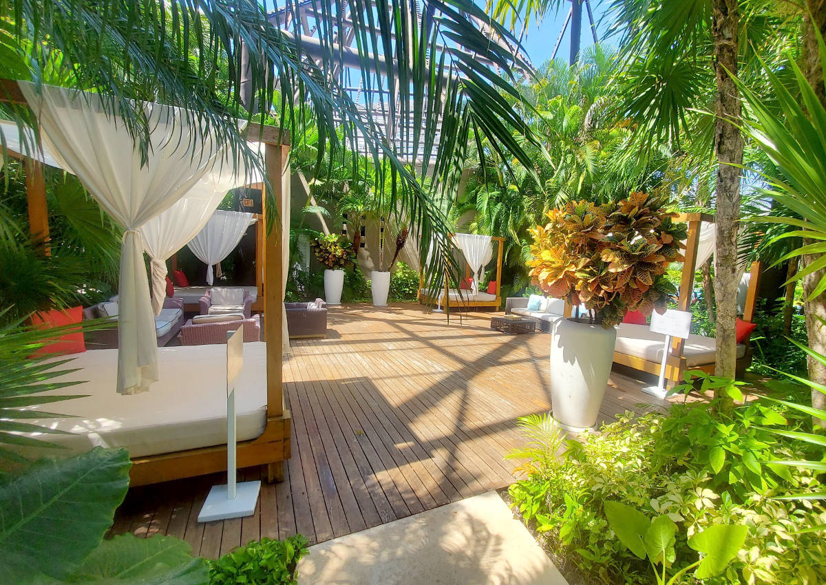 The Sanctuary is part of the Grand Mayan pool area. The partial shade offers much relief from that hot sun in the summer.