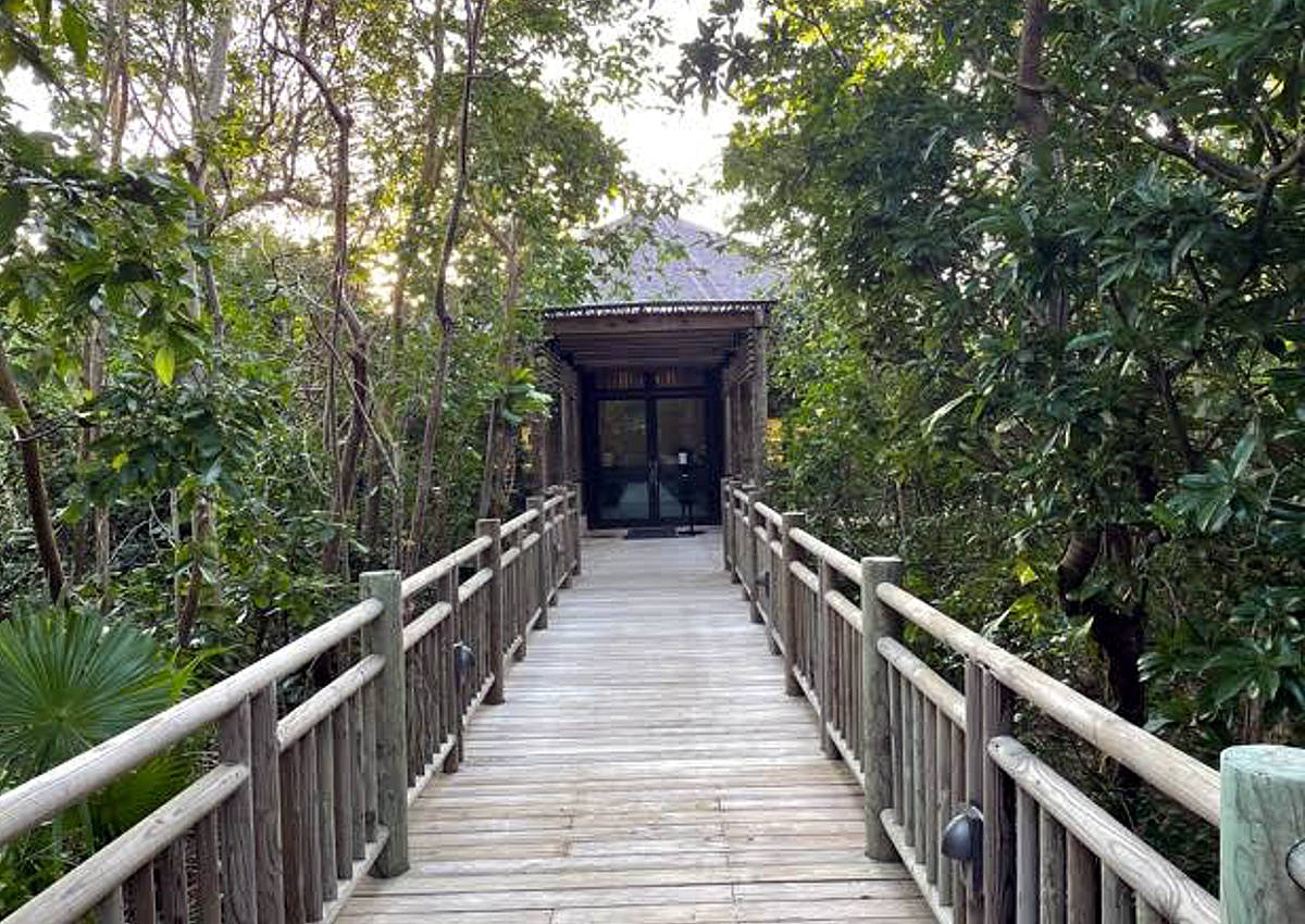 Walking throughout the property is accomplished using a maze elevated walkways. Great for exercise. Otherwise, a shuttle system is available too.