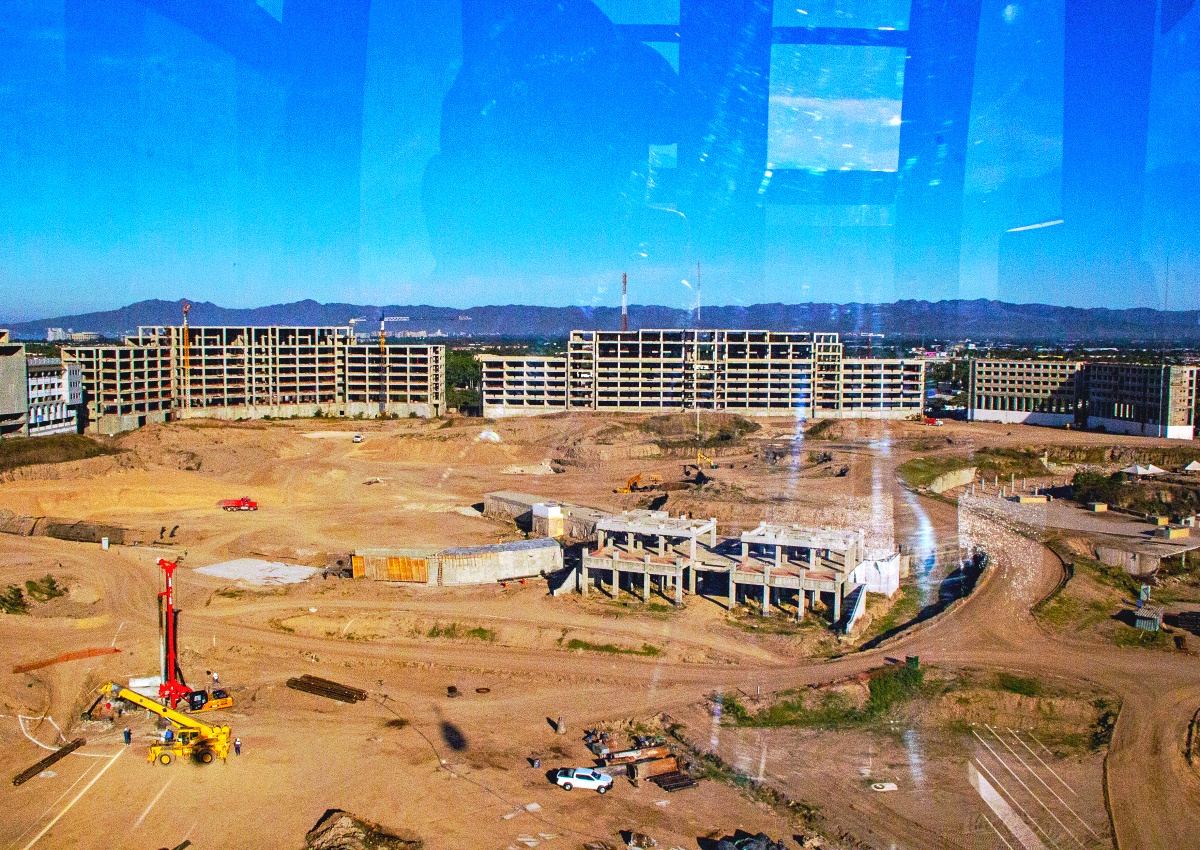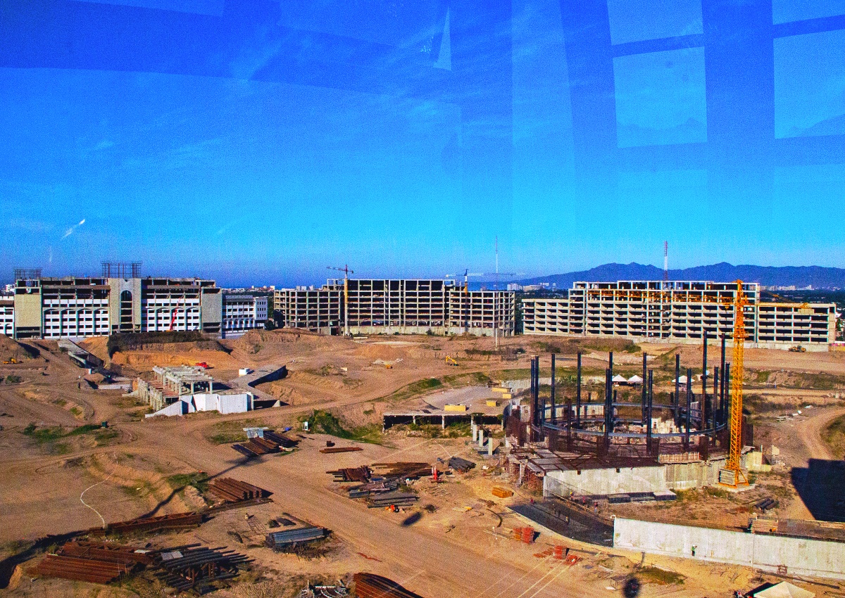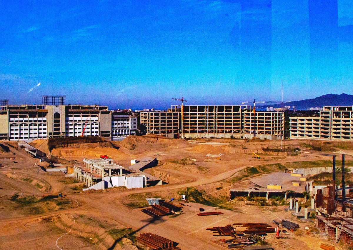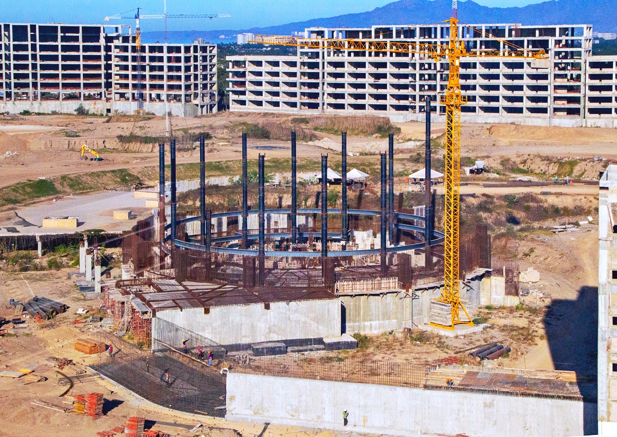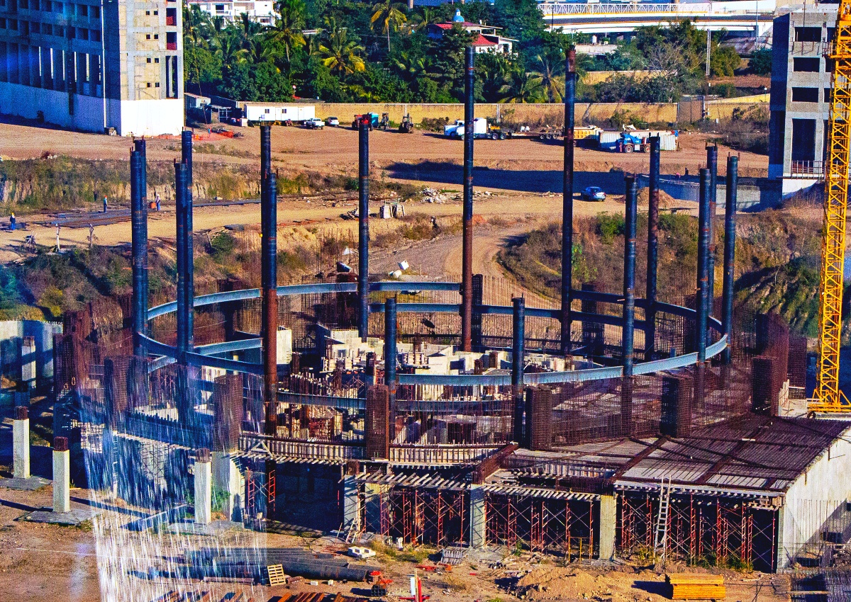 November, 2011 - The Parks Area was under construction. This photo shows the proposed new entrance and train tracks linking this structure to the Santuario, which was under construction then too.