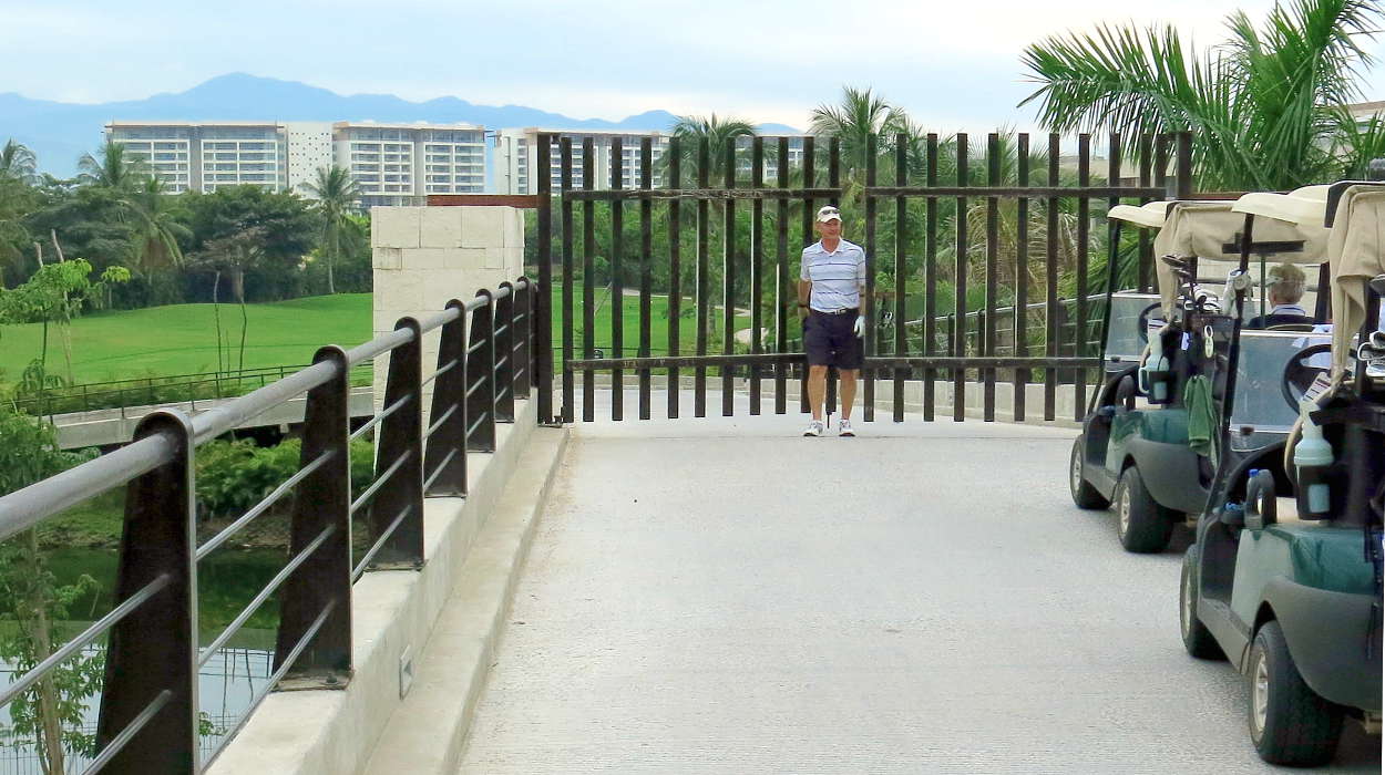 The new overpass and private entrance is very obvious from the golf cart road over Boulevard Nayarit. True the cart overpass is a safer way to reach the golf holes on the other side of Boulevard Nayarit, but closing off the exits to foot traffic has expanded guest compaints about being held captive.