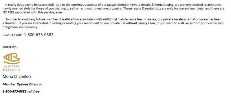 We will do our part by posting alerts from fellow members as we receive them (or close to it). One such friend contacted us about 10 days ago with information about an individual posing as a Mayan Resort representative. This person invited him to contact her to participate in a "private & resale program". All under the implied auspices of the Mayan Resorts.