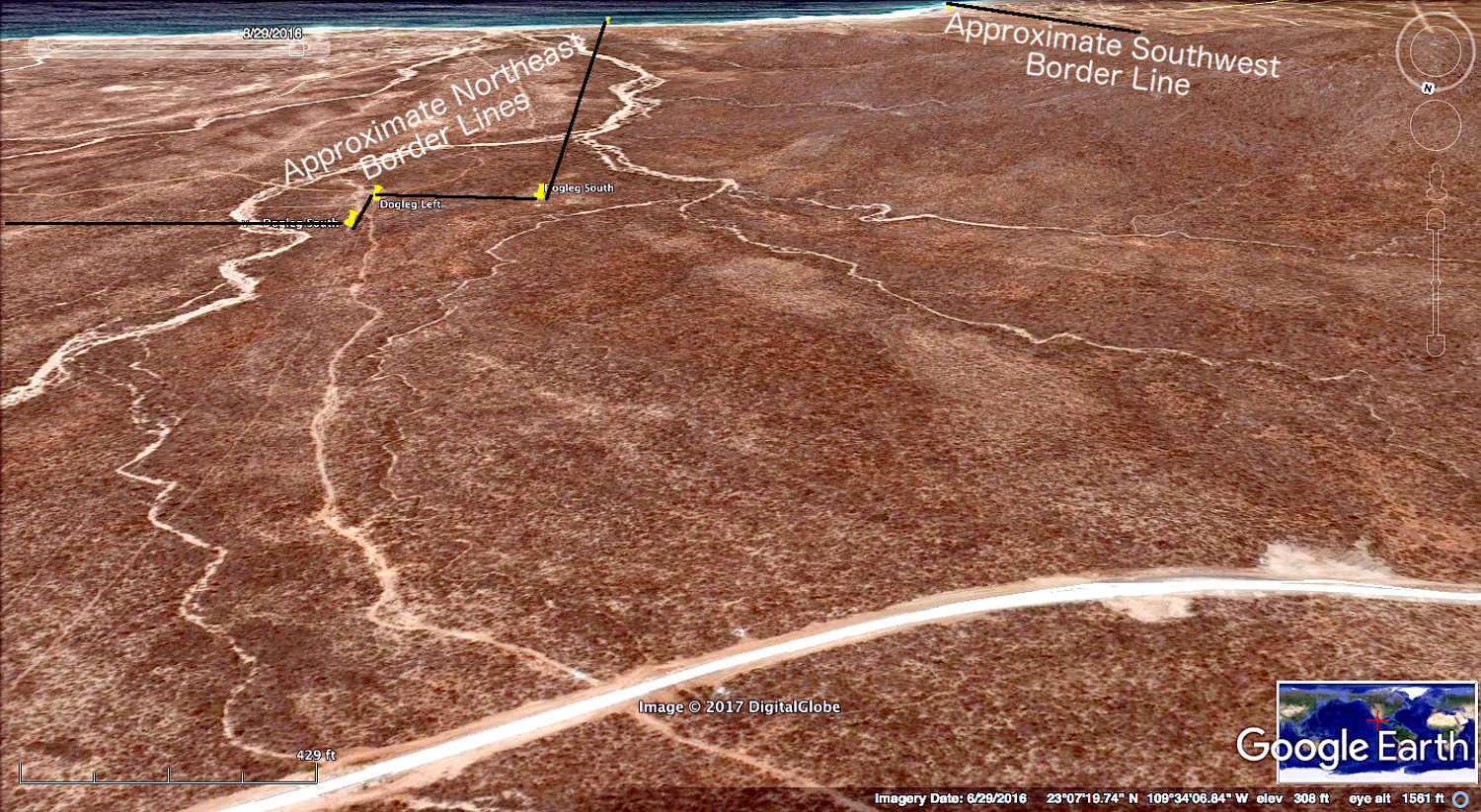 The difference between these two images is the date they were taken. The one with roads and trucks was taken in December, 2016. The one without roads and trucks was taken just 6 months before in June, 2016. Please tap the photo to expand. Then tap your browser's back arrow to return to this page.