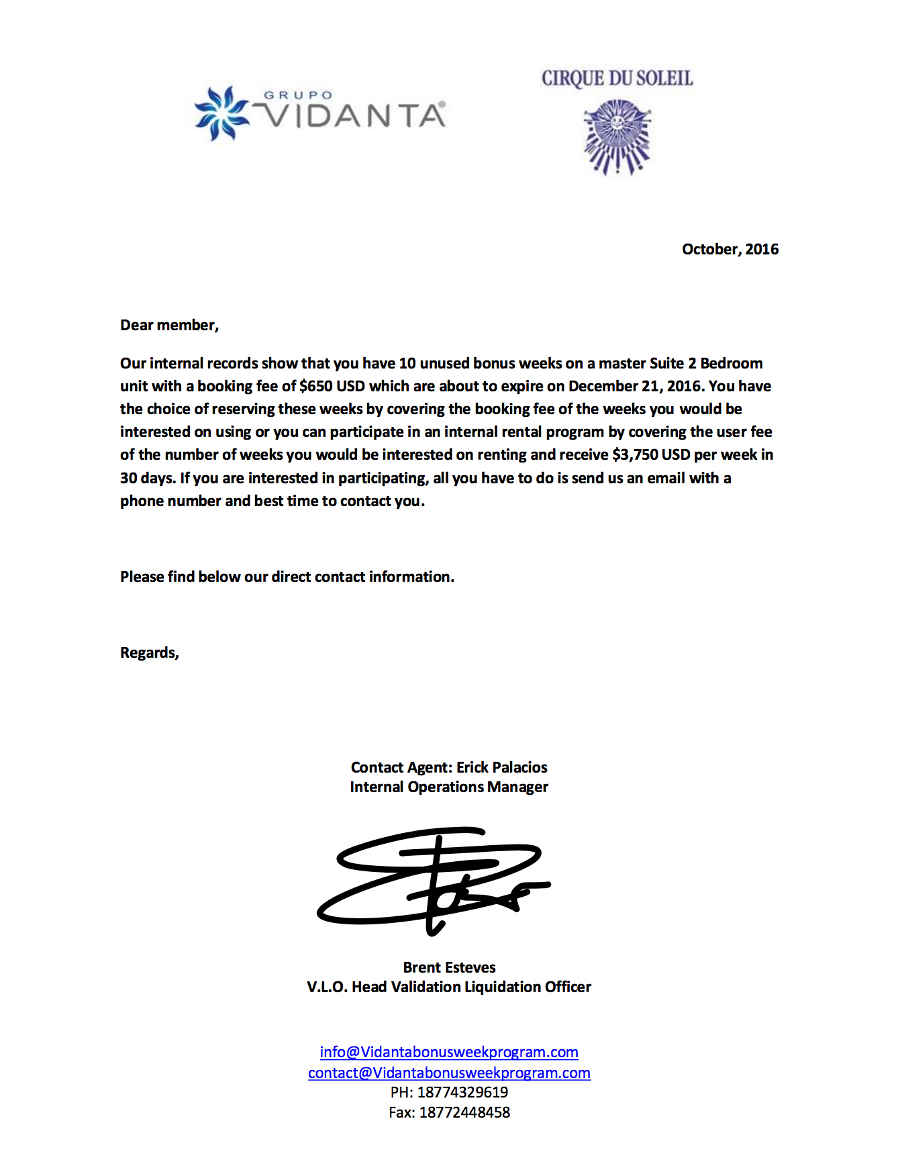 Vidanta Bonus Week Program - Fake...!