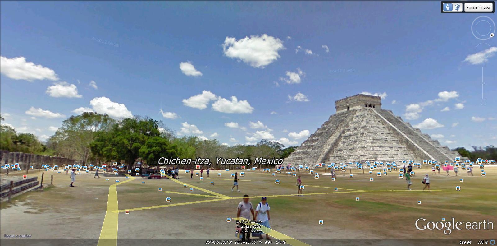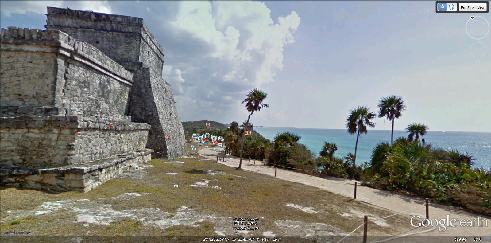 We use Google Earth a lot. There is a feature that allows you to see your desired location from the street. This is a very useful tool, and can become quite addicting. Make sure you have enough time before you test this great planning feature out. Time has a way of zooming by when using this tool.Anyway, we learned that the National Institute of Anthropology and History (INAH) and Google Mexico teamed up about 4 years ago to create street views of 81 archeological finds that are under the control and protection of the INAH. This is a very ambitious project, and we are thrilled with the results.