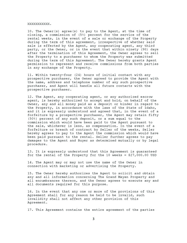 This offer is for 5 RWeeks and 5 VFWeeks at the Riviera Maya Mayan Palace Regency. Vacation Solutions Nework promises to pay $2,700 per week for a total of $27,000.