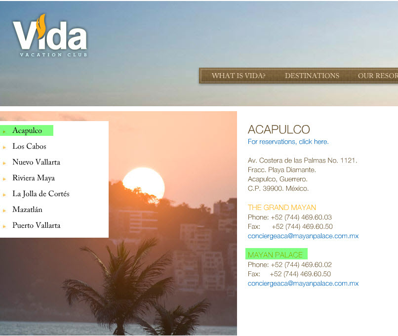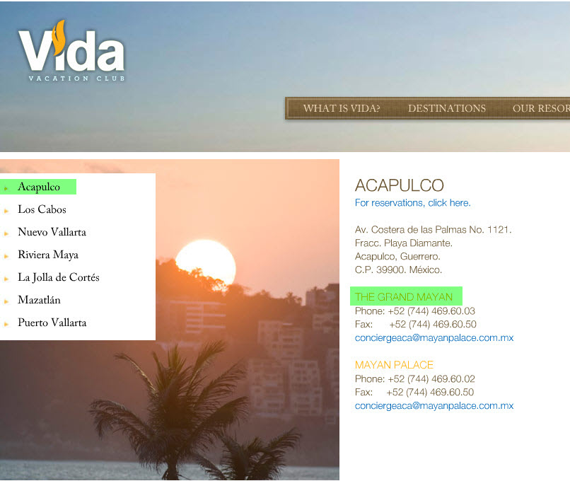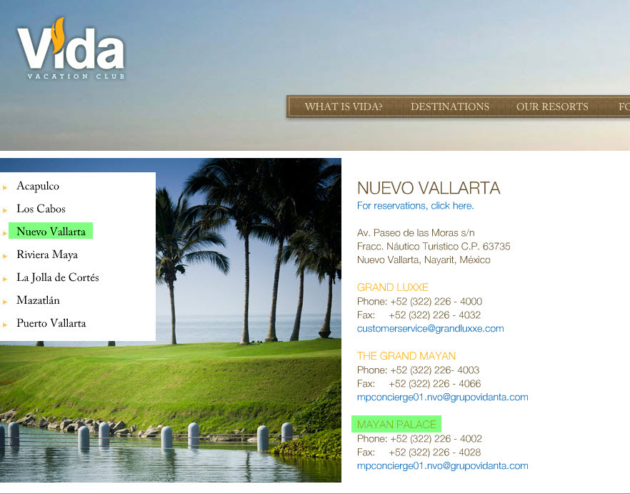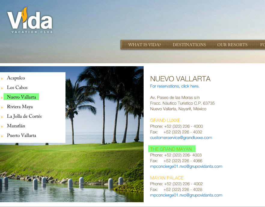 Listed below are the known operating resorts within the Vida Vacation Club group of resorts.