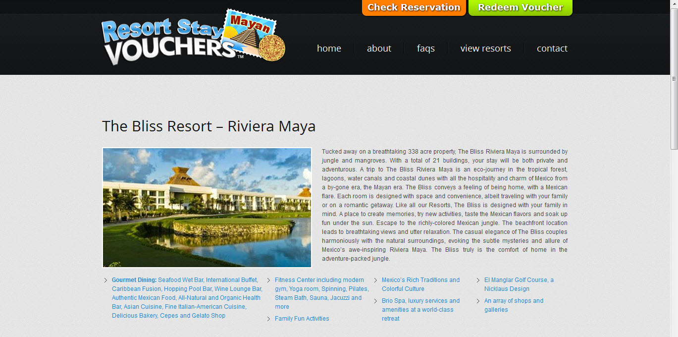 Yesterday, we were offered the opportunity to participate in an AmazonLocal deal. The offer is take advantage of a seven-night stay at a Mayan Resort in Mexico. There are five more days left to buy a voucher through a company called Resort Stay Marketing, LLC. The company says they are a Nevada Limited Liability Company, but they are not registered in Nevada as such. Even though the representative of the Nevada office of the Secretary of State said it is illegal for a company to list themselves as something they are not, that is not the point of this post.Instead, we learned that the The Bliss Resort now has 21 buildings at Riviera Maya.