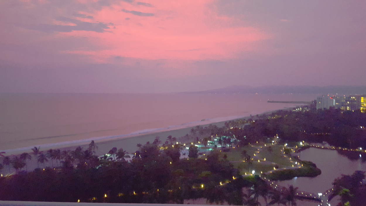 Very unusual looking out at the bay and ocean tonight. Patricia is way south of us but beginning to affect the skies. Lots of preparations being made for her arrival in the area. Should just be a wind and rain event here. All outdoor activities closed as of 7 PM tonite. This one snuck up on everyone! Beautiful sky tonite however! Stay in touch.