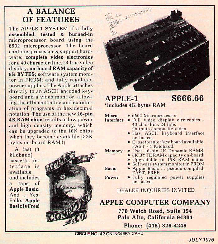 Just think how technology impacts all of our lives today. Do you remember what you were doing in July, 1976. That was only 41 years ago, and that was the first time an Apple computer was offered for sale for $666.66.